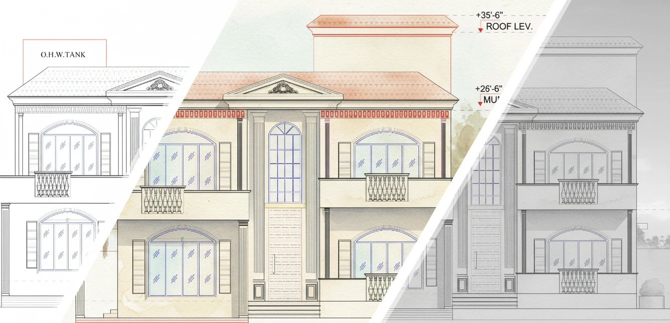 Neoclassical Residence — A Study in Symmetry and Grandeur